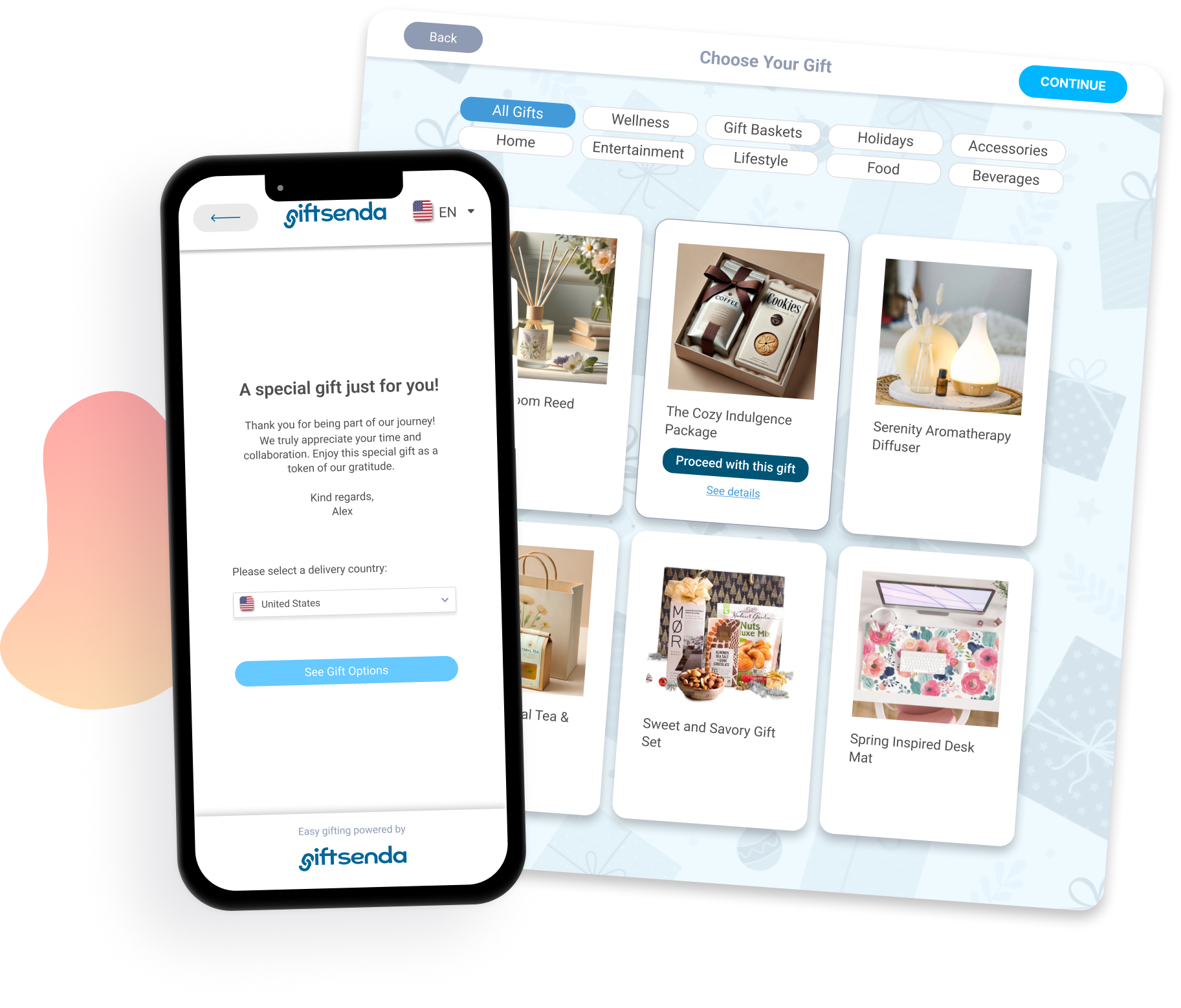 When the database updates, Giftsenda sends the right gift to the right person, on your behalf.