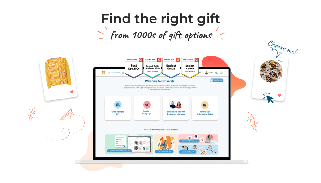 Pro Tip: Give recipients the option to choose their own branded swag from a collection of custom items. It’s exciting and also ensures no-one will be disappointed with what they receive.