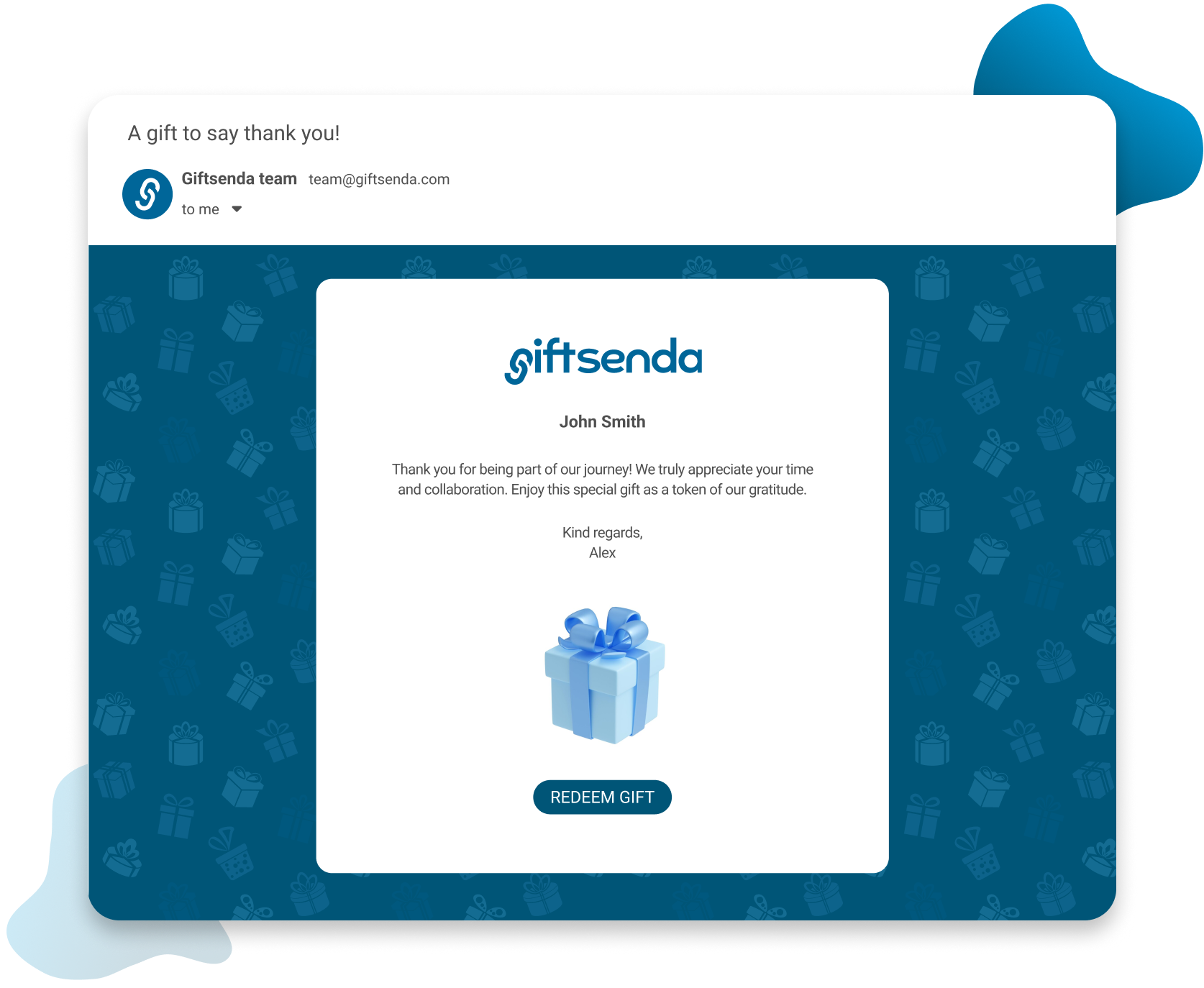 Giftsenda sends a digital or physical gift invite based on the chat, global delivery, fully branded.
