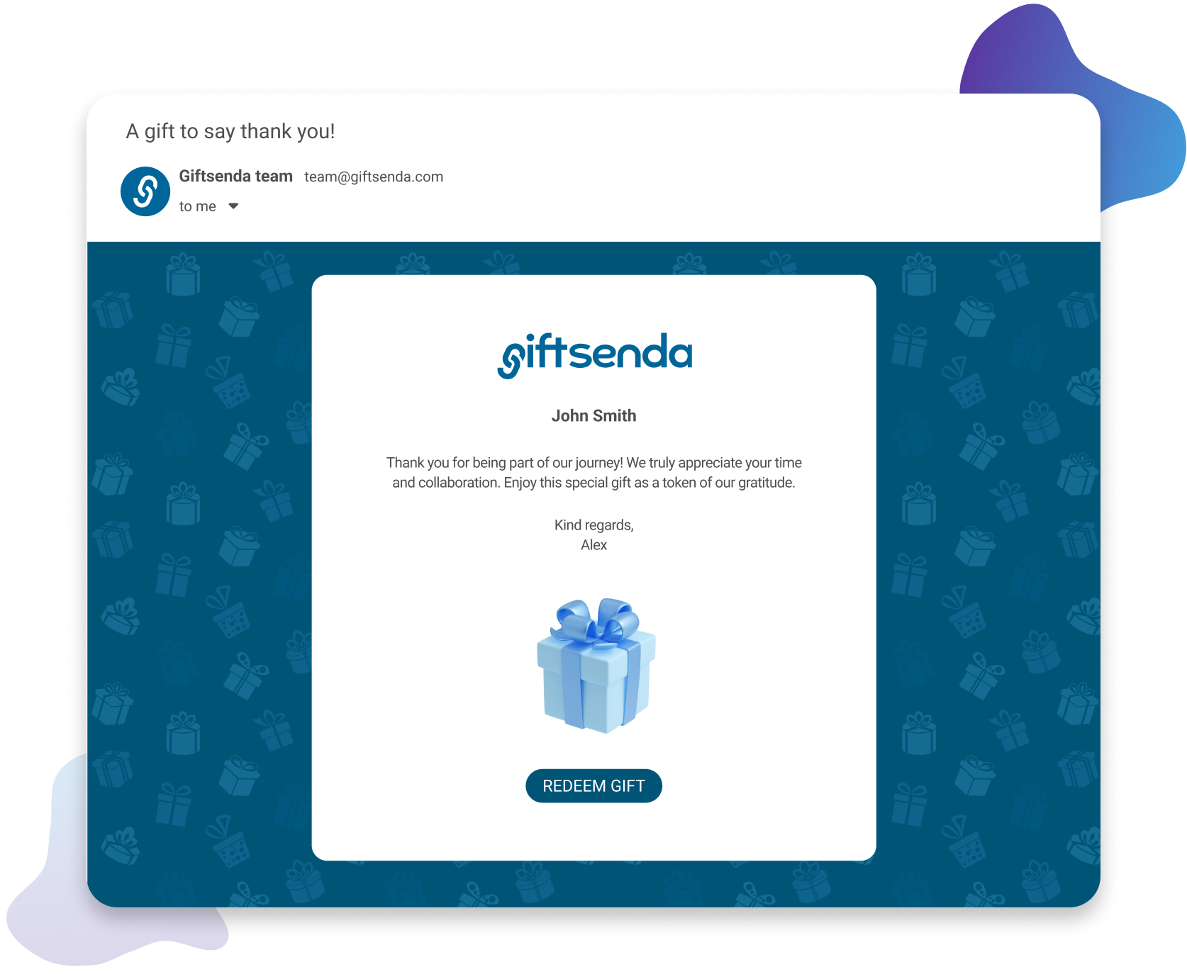 Giftsenda takes care of the rest; choosing, personalizing, and delivering the gift to your recipient.