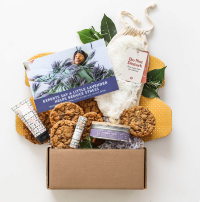 Let your recipients embrace calm and relaxation with the Stress-Less Lavender Gift Package; a well curated care package centered around stress relieving lavender and healthy eating. In this gift you will find a lavender-filled eye mask, a lavender lip balm, lavender hand lotion and a lavender scented candle. And for a scrumptious, guilt-free treat; there’s half a dozen gluten-free cookies for your recipient’s indulgent snacking. Give the gift of soothing, stress reducing lavender and delicious, nutritious vegan cookies with the Stress-Less Lavender Gift Package.