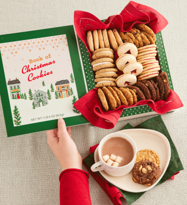 The Assorted Cookies Gift Hamper is a delightful collection of delicious cookies, made from premium ingredients. In this gift are four raspberry-filled tree-cutout shortbread biscuits, six cranberry orange shortbread biscuits, six fruitcakes, four gingerbread sandwiches and six raspberry galettes. There are also six toffee apple biscuits and six double chocolate cherry biscuits included in the gift to make a good gift, great. Share an indulgent taste experience with Assorted Cookies Gift Hamper.