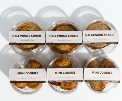 - a box of mini and half-pound peanut butter chocolate chip cookies,