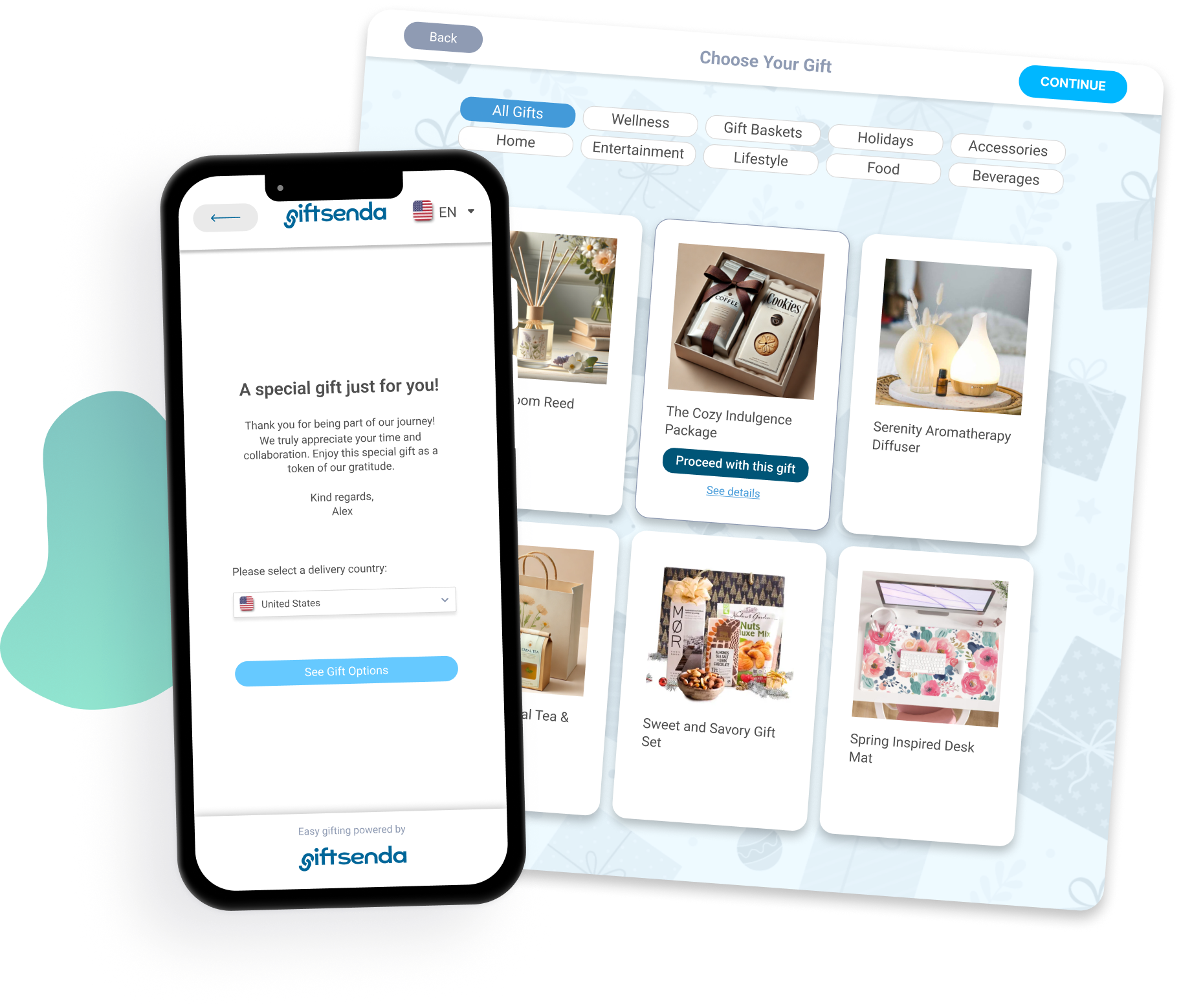 Automatically send a curated gift or branded gift invite based on responses, instantly and globally.